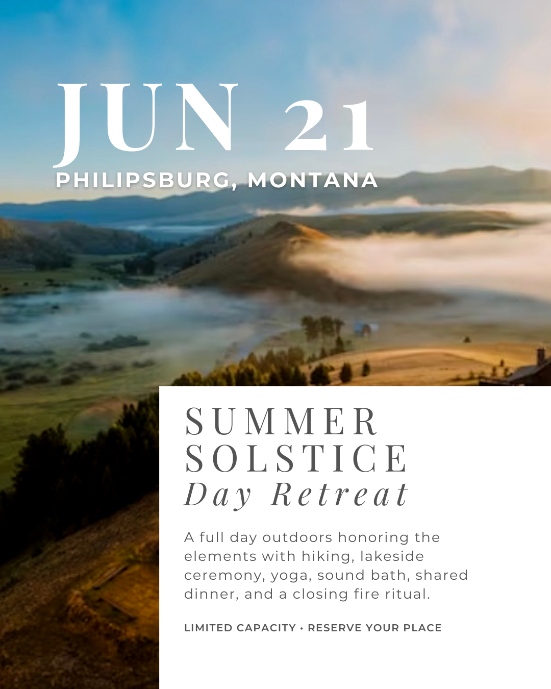 Big magic in a single day. These half- and full-day retreat experiences capture the heart of Anaconda Yoga—movement, ceremony, nature, and connection woven into one unforgettable gathering. Each one highlights a different treasure of Southwest Montana, inviting you to explore, unwind, and share in the magic with good company. See what calls to you and make a little adventure out of it.